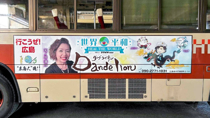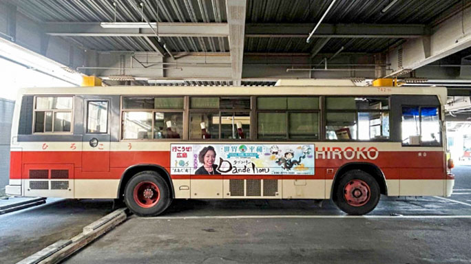 現在は、広島市内の路線バスにて広告掲出中です。(広島駅周辺・緑井・中区などを運行しています)